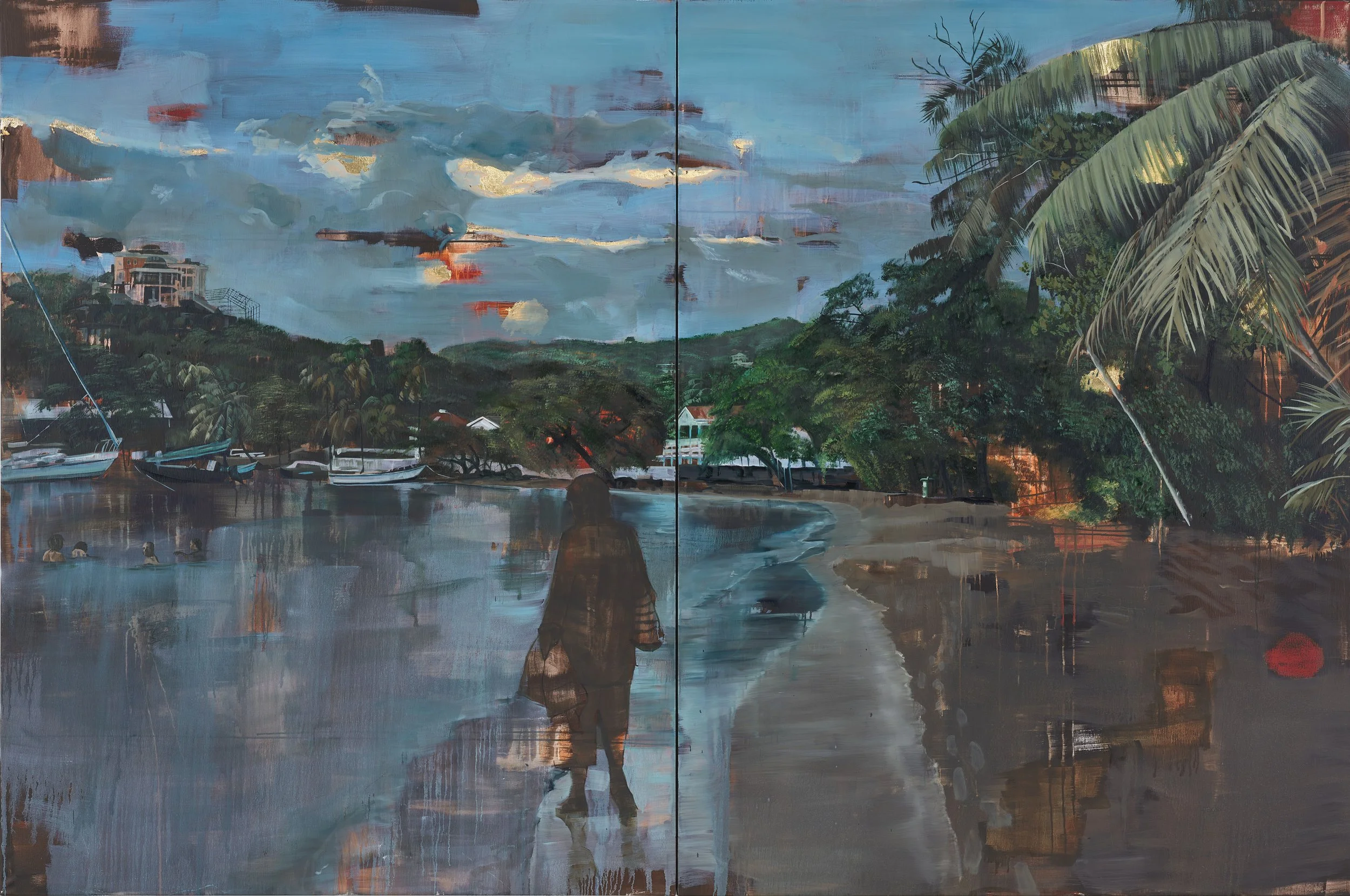 DI SEA HAVE MANY GHOST 2025, Oil, Acrylic and Schlag metal on canvas. Diptych, 200 x 300 cm, 78 3/4 x 118 in (Overall)
